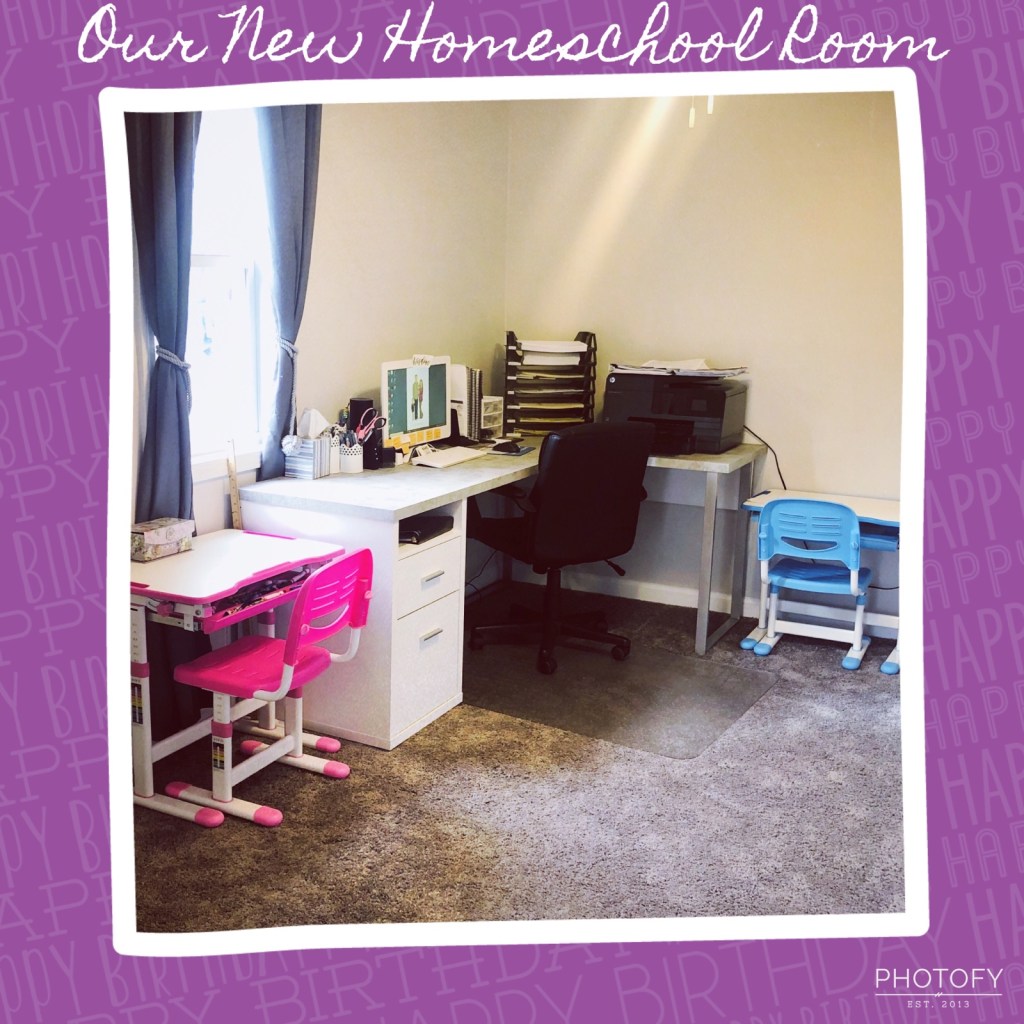 Most of last year we did upgrades to our house. One of those was our patio. We never used it and it was sort of an eye sore. So we framed it in and turned it into our homeschool room and office for me. This worked out much better because it was on the ground floor and closer to everything in the house.